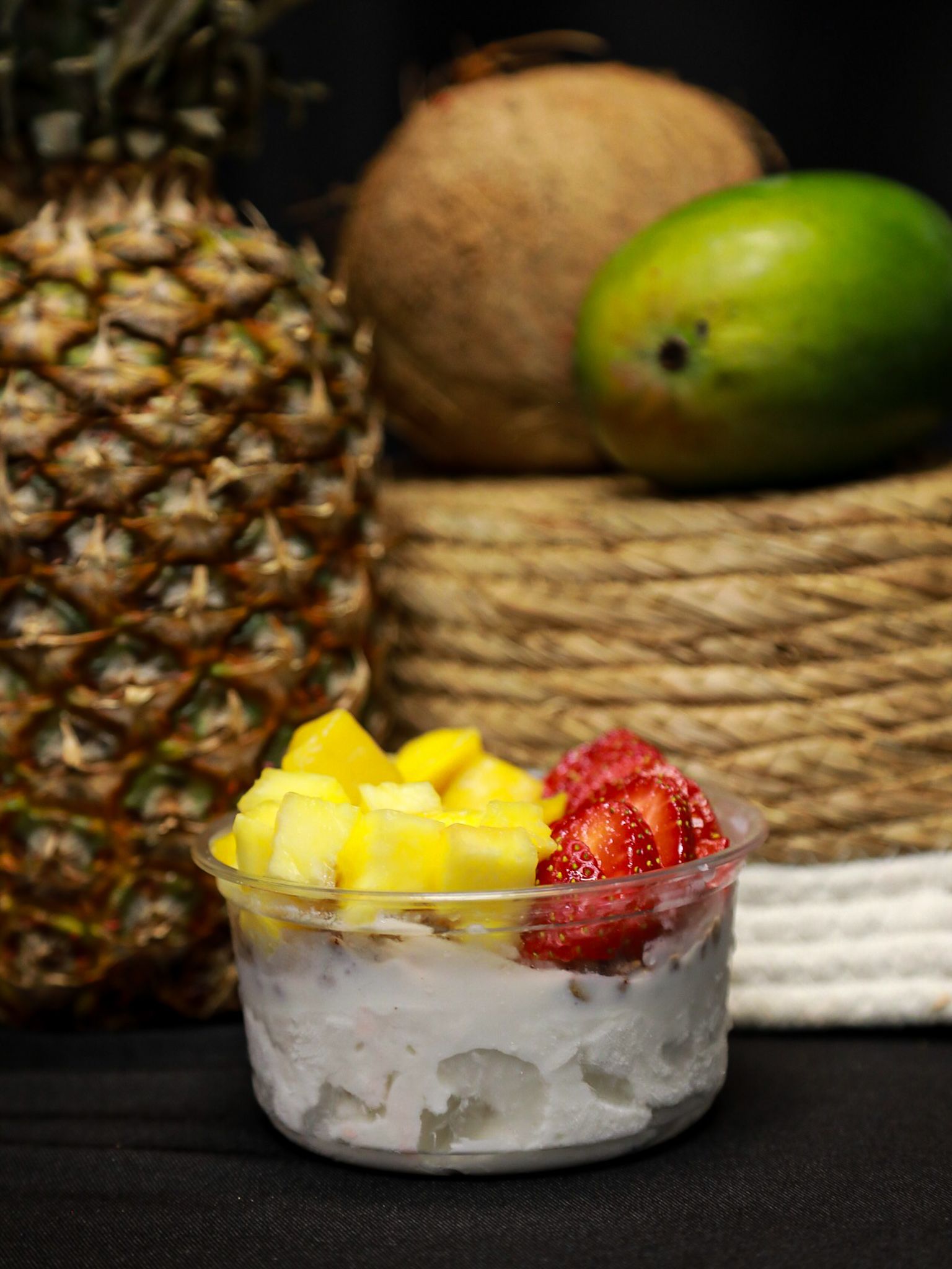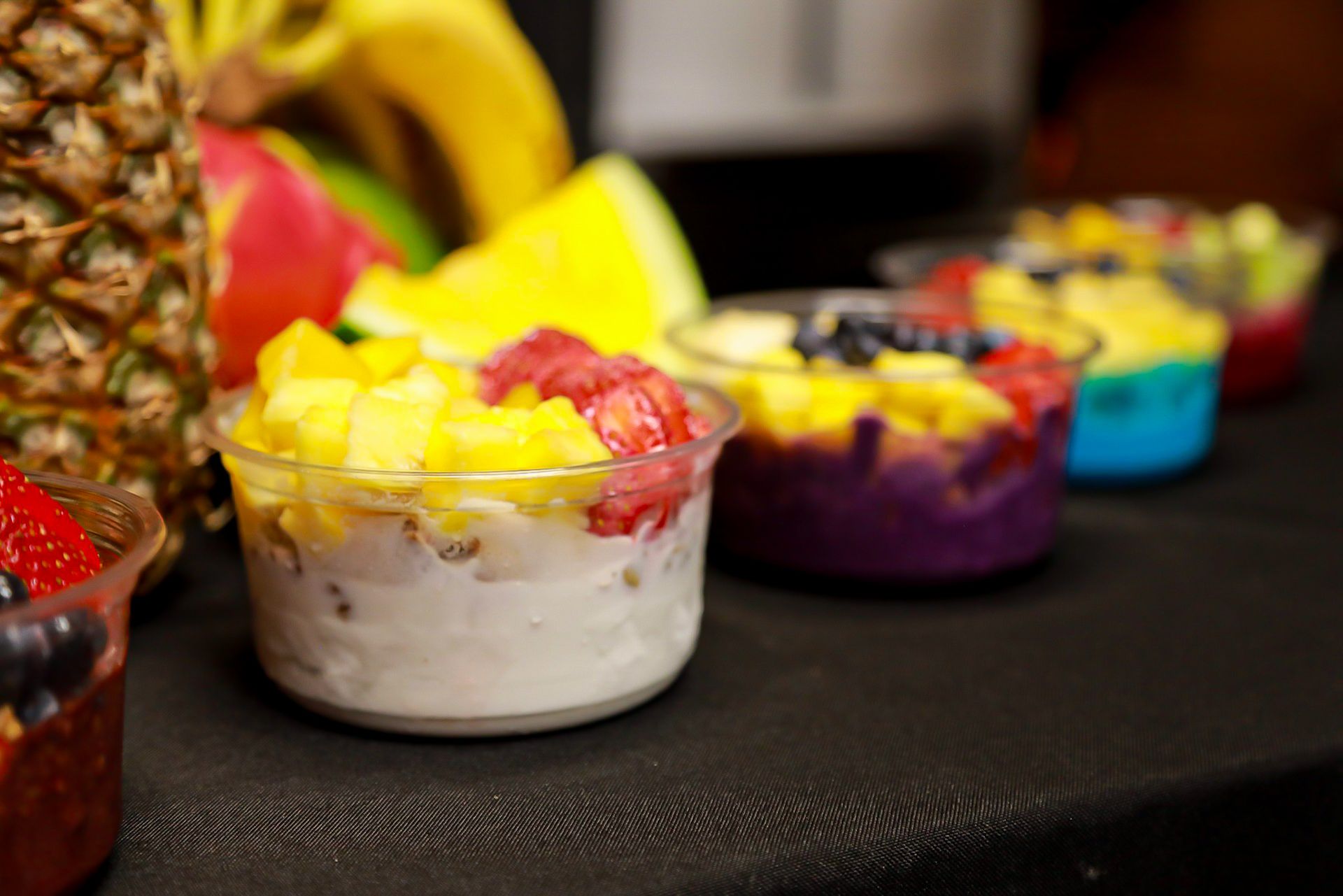 ACAI, COCONUT CREAM, MANGO-PINEAPPLE BLEND, BASE OF THE MONTH